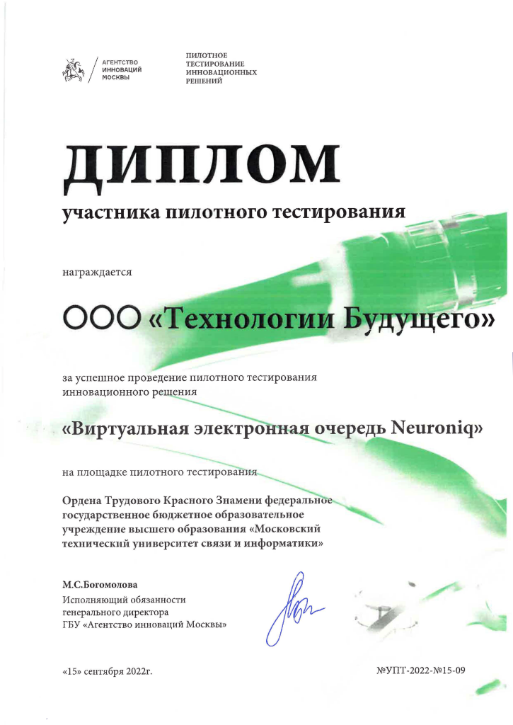 ООО “ТЕХНОЛОГИИ БУДУЩЕГО” внесено в реестр аккредитованных организаций Минцифры России, осуществляющих деятельность в области информационных технологий. Номер в реестре аккредитованных организаций 11889 от 20.08.2020г.