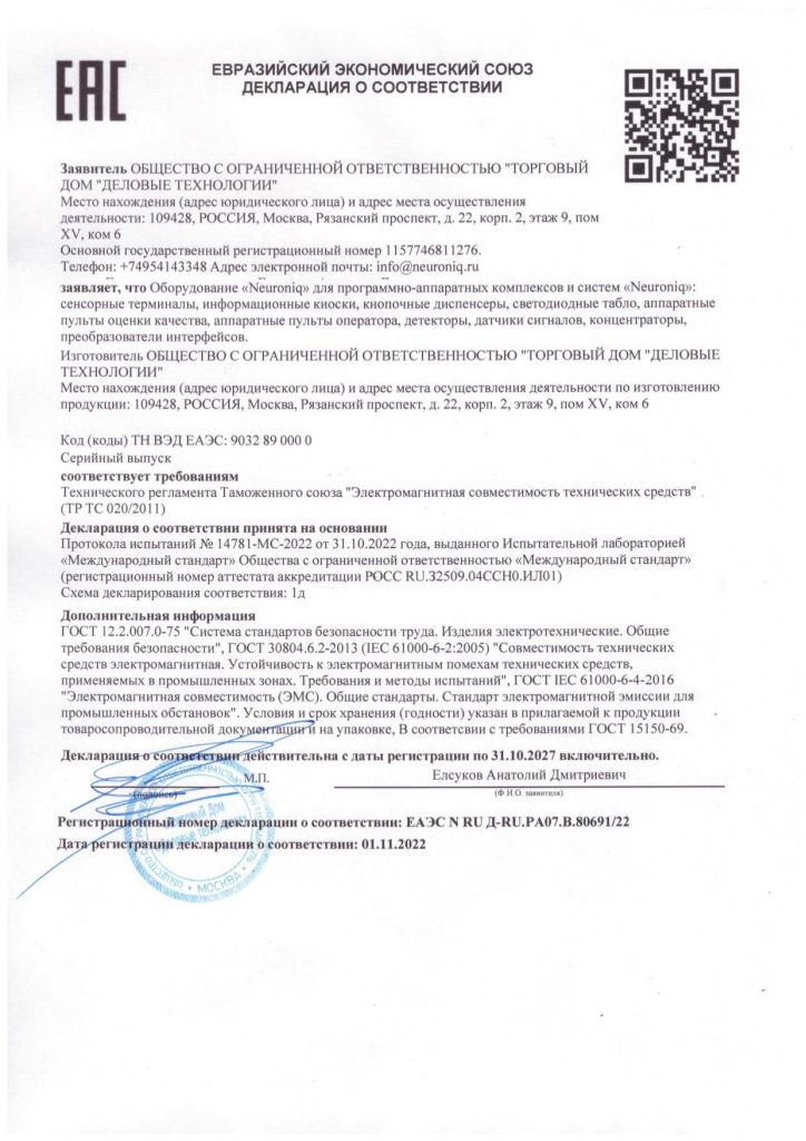 Системы «Neuroniq» полностью российской разработки и рекомендованы для госзакупок государственным и муниципальным учреждениям Российской Федерации. Участвуем в тендерах с 2008 года по государственным и коммерческим заказам. Заключено более 700 государственных контрактов со 100% выполнением.
