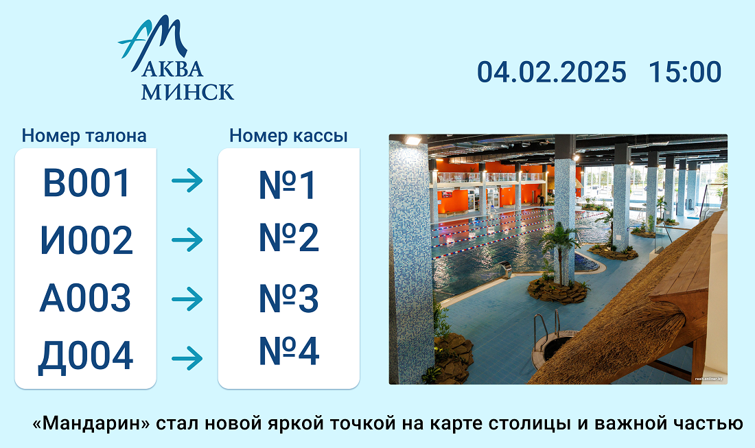 В Республике Беларусь, в г. Минск, в физкультурно-оздоровительном комплексе «Мандарин» установили современную систему электронной очереди Neuroniq.